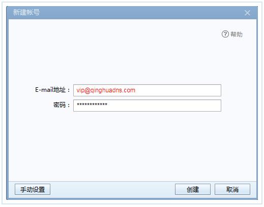 第二步:填入完整的郵箱地址,例如:vip@qinghuadns.com、密碼,并單擊左下角手動設(shè)置按鈕。