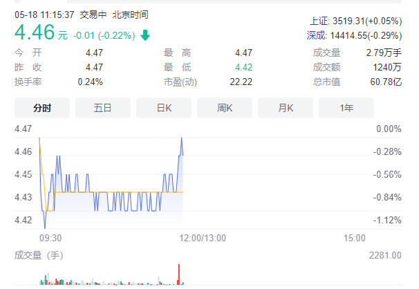截至發(fā)稿,二六三A股股價(jià)下跌0.22%,報(bào)4.46元。