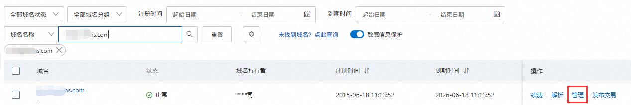 第一步:先登錄阿里云域名管理平臺,點擊要轉出的域名后面的管理,獲取轉移密碼。注意轉移密碼是發(fā)送到域名所有人郵箱,操作前一定要確認一下郵箱是否是自己在用的常用郵箱。具體方法如下截圖:
