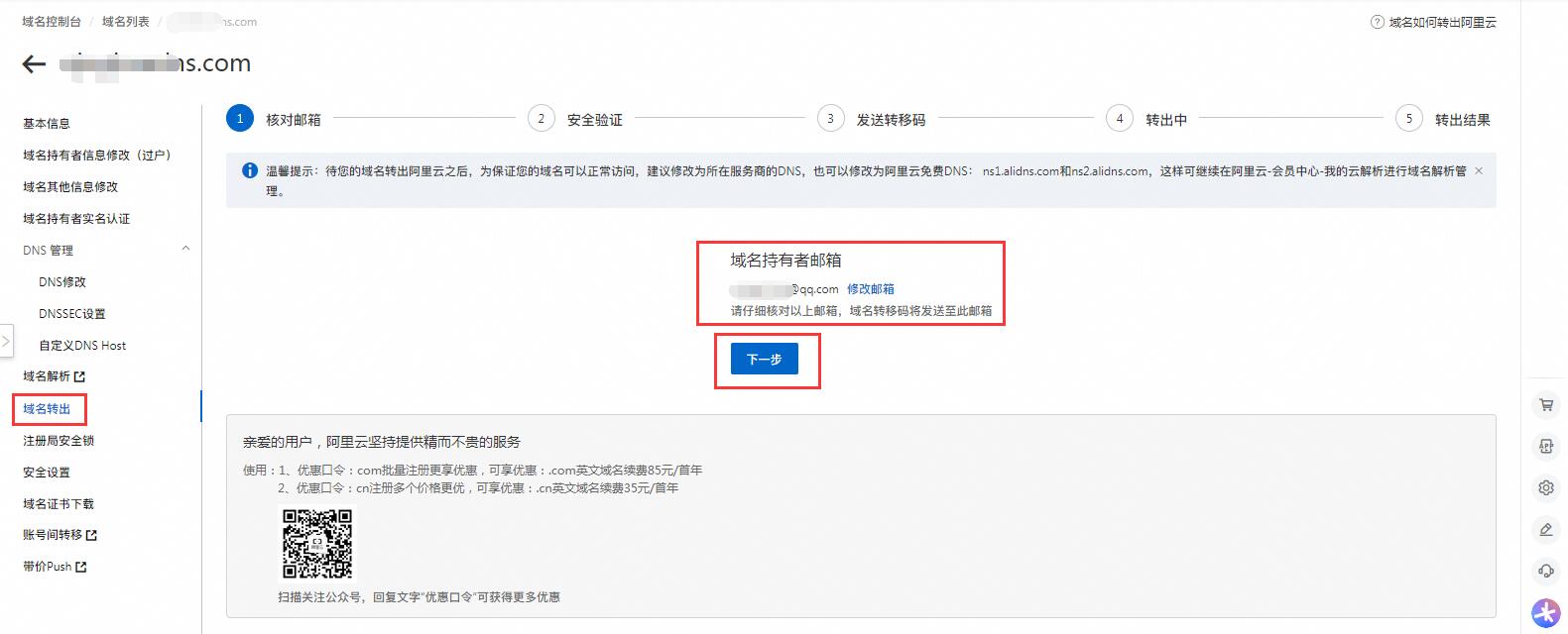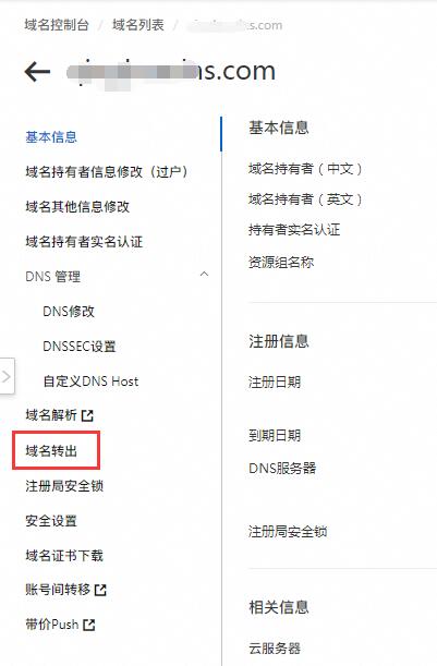 阿里云萬網域名轉出到新網域名平臺管理方法。