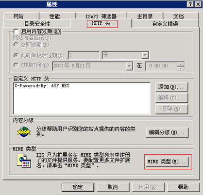 3.點(diǎn)擊”新類(lèi)型”按鈕,擴(kuò)展名添上”.FLV”,內(nèi)容類(lèi)型(MIME)添上“flv-application/octet-stream”