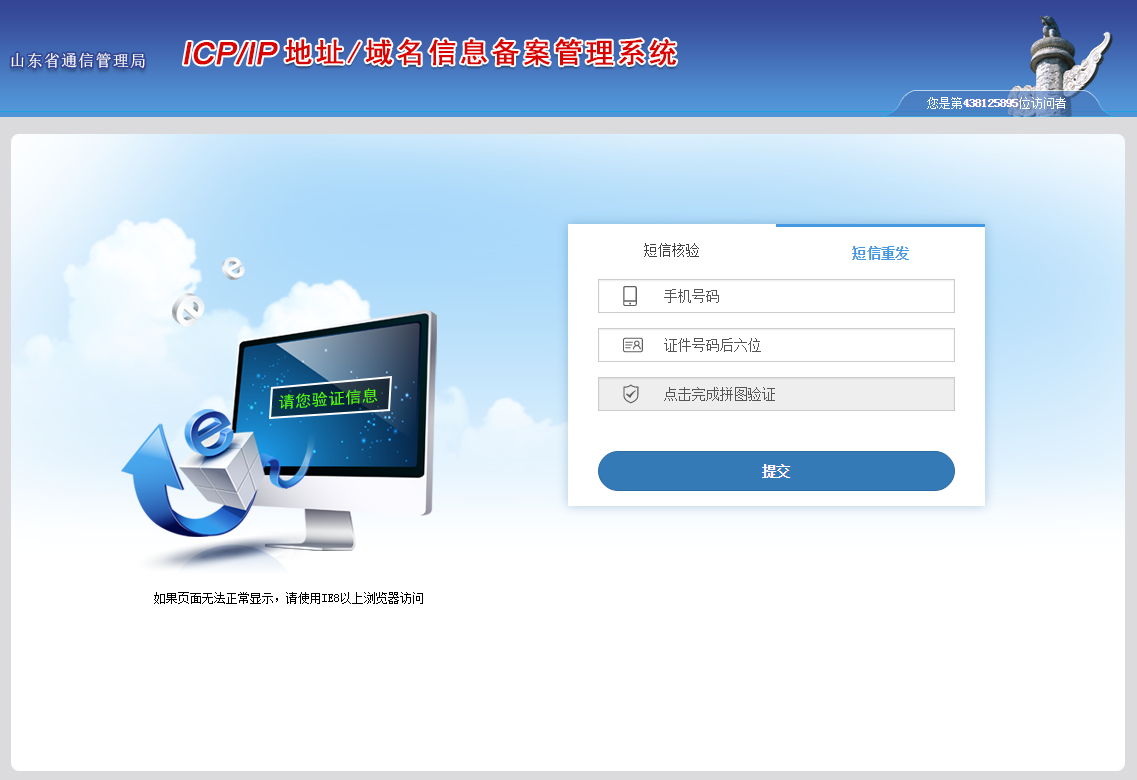 3.2、點擊管局網(wǎng)站頁面【備案短信核驗】按鈕,進(jìn)入核驗頁面