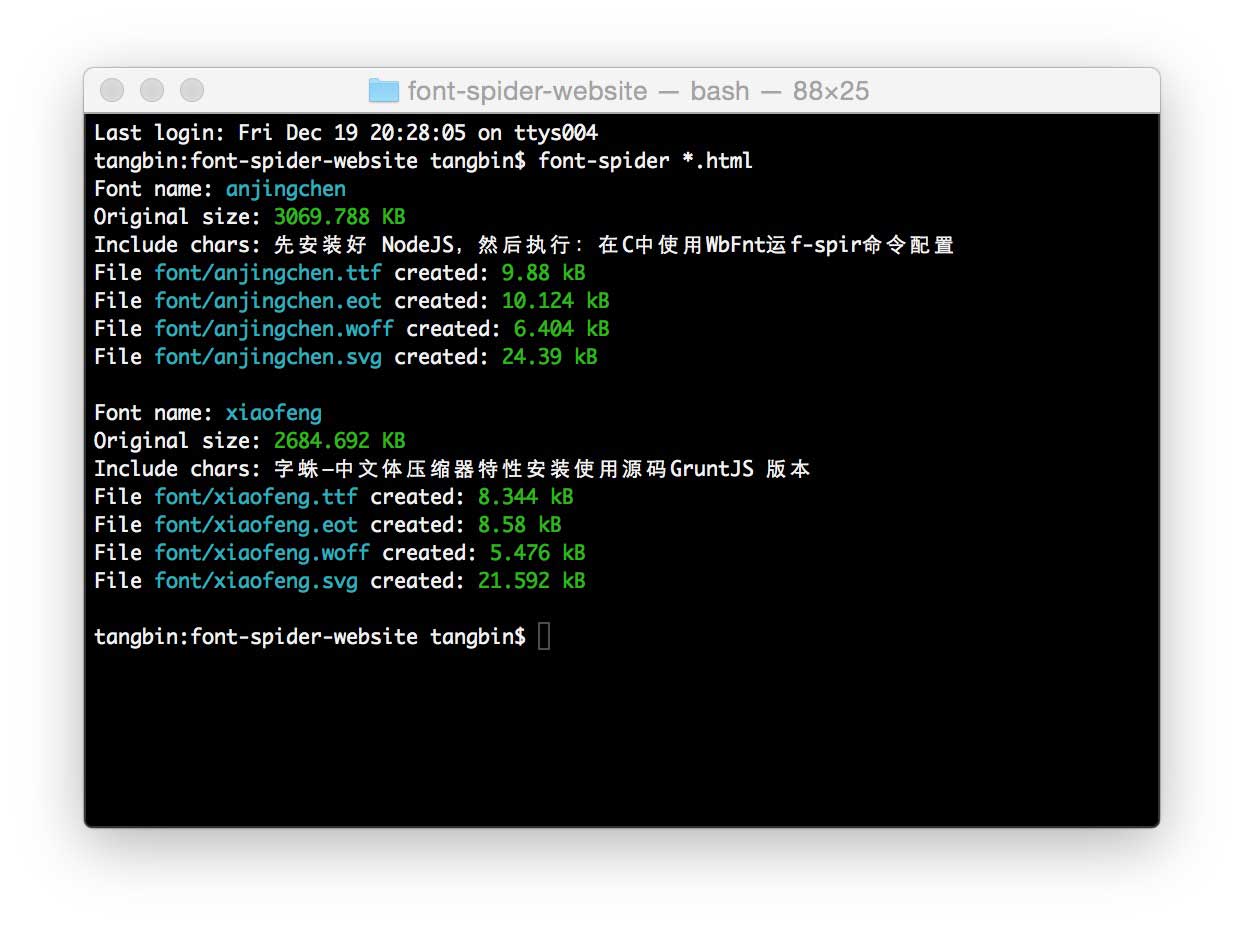 運(yùn)行 font-spider 命令: